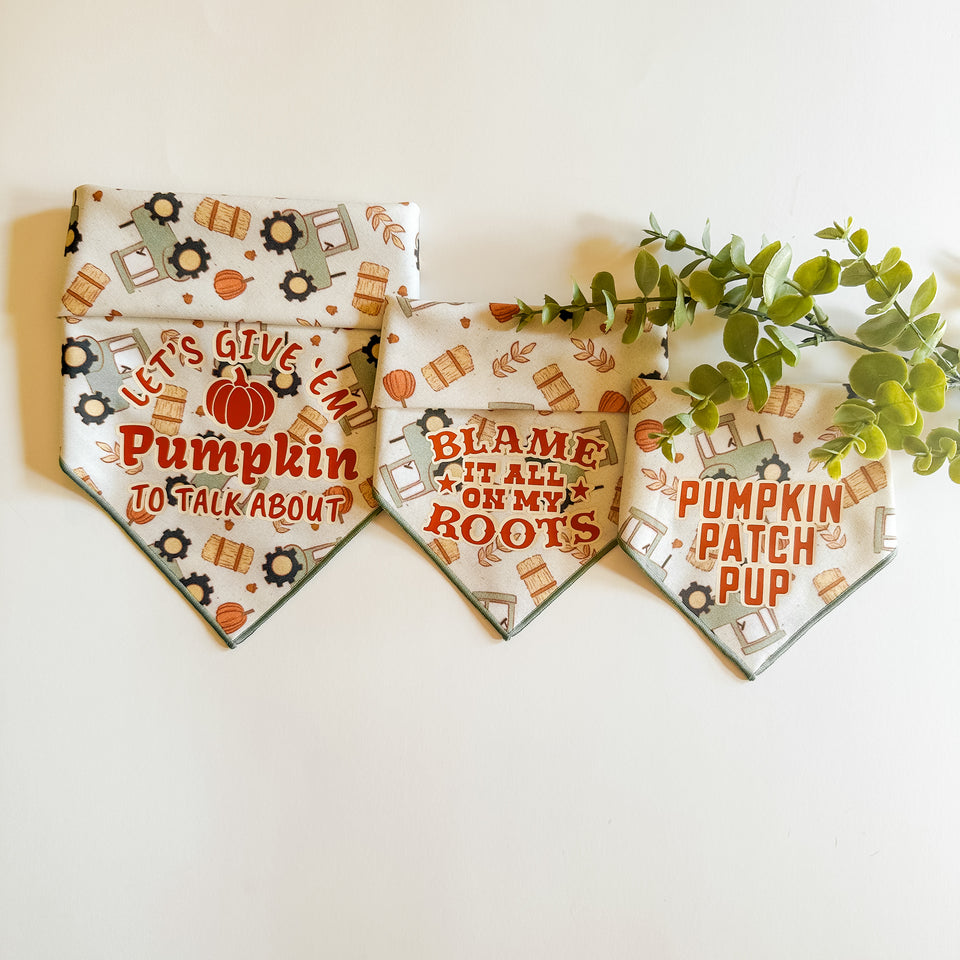 Fall is in full swing! Grab a new fall bandana & head to the pumpkin patch with your pup!