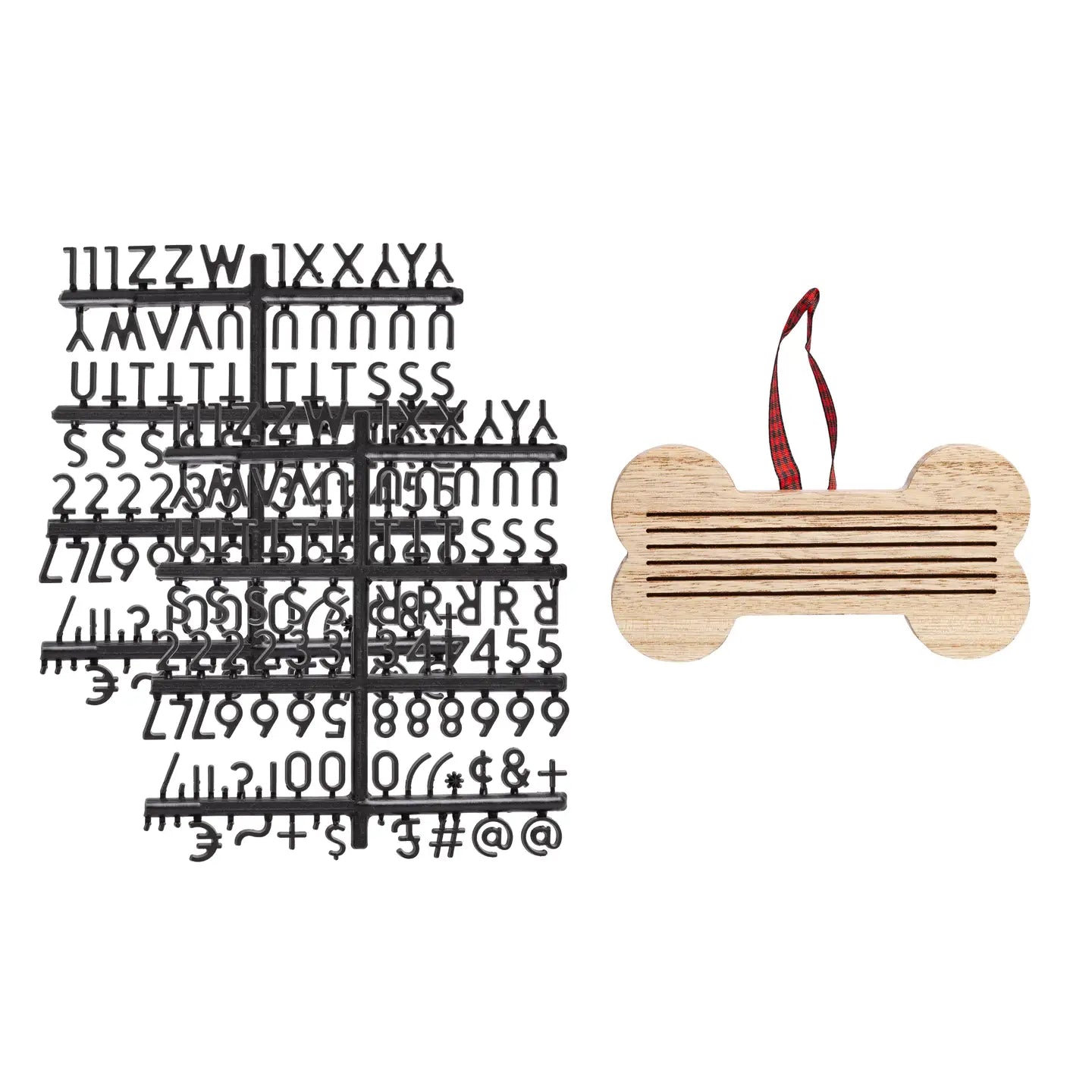 Includes wooden letterboard ornament, 191 black letters, numbers and symbols and a red and black plaid hanging ribbon · This adorable bone shaped ornament is the perfect keepsake to celebrate your puppy’s first Christmas.
