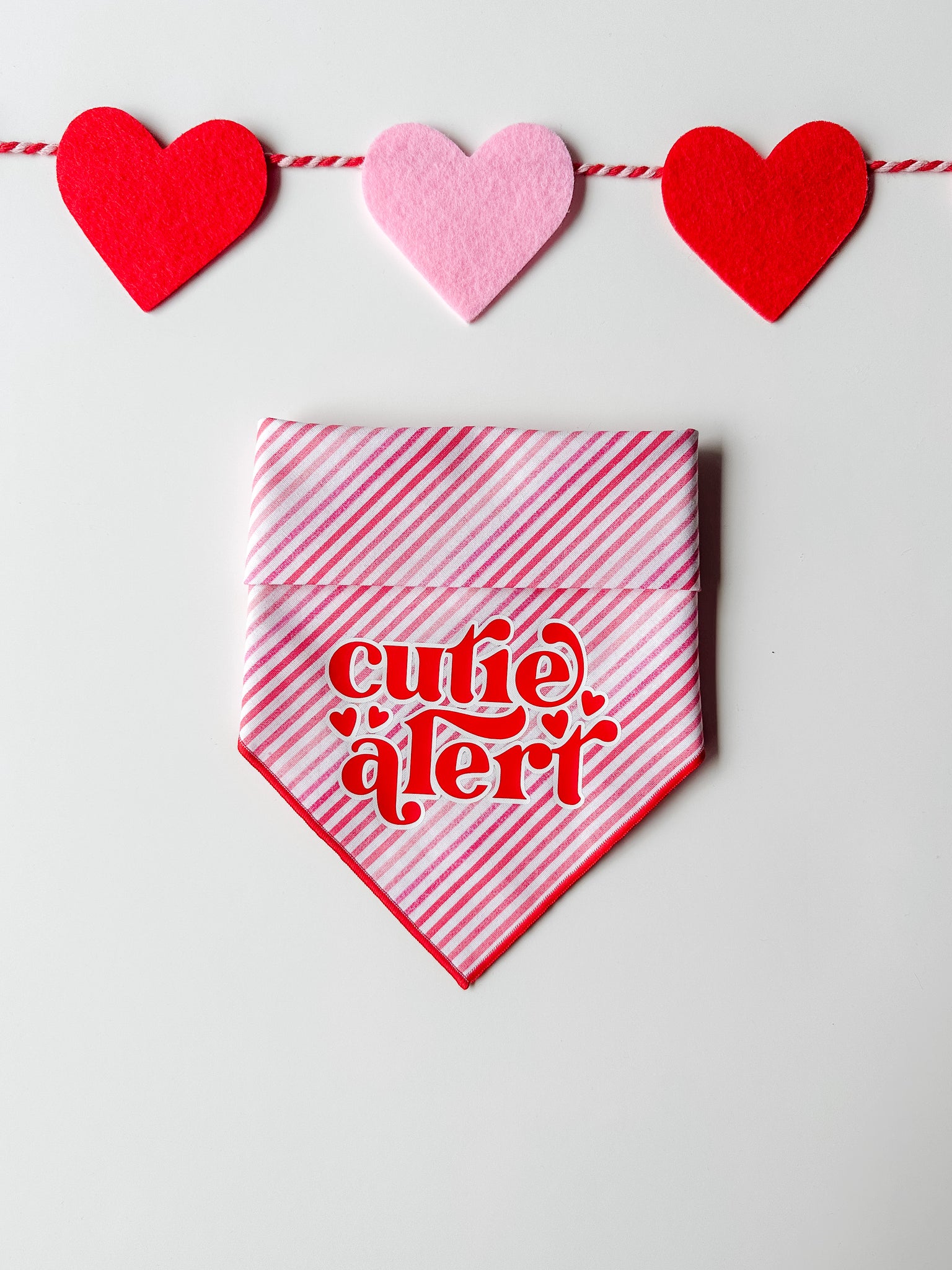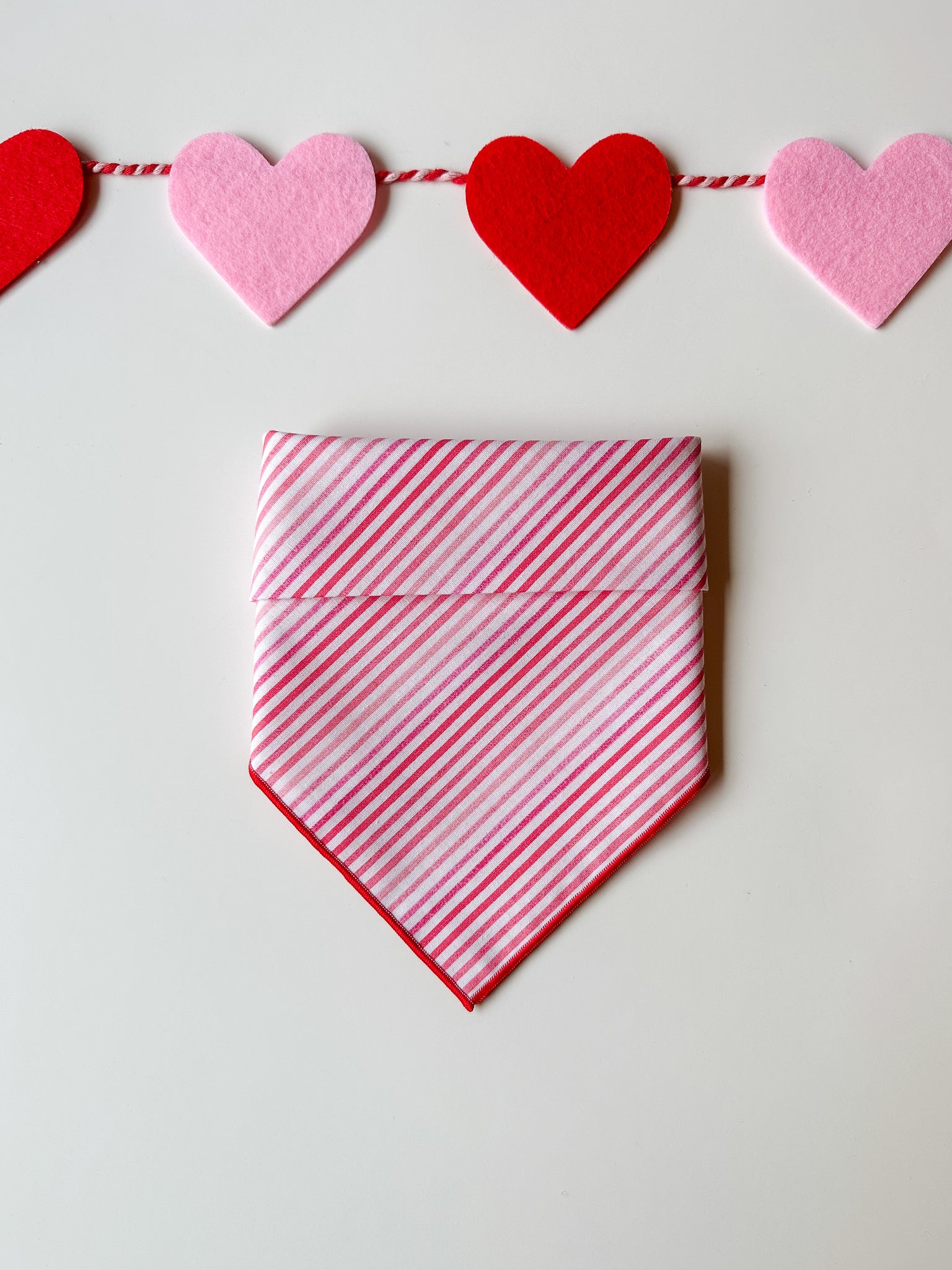 CUTIE ALERT - Bandana background is pink & red striped. This bandana is finished with a secure rolled hem in red. This bandana is made of a cotton material