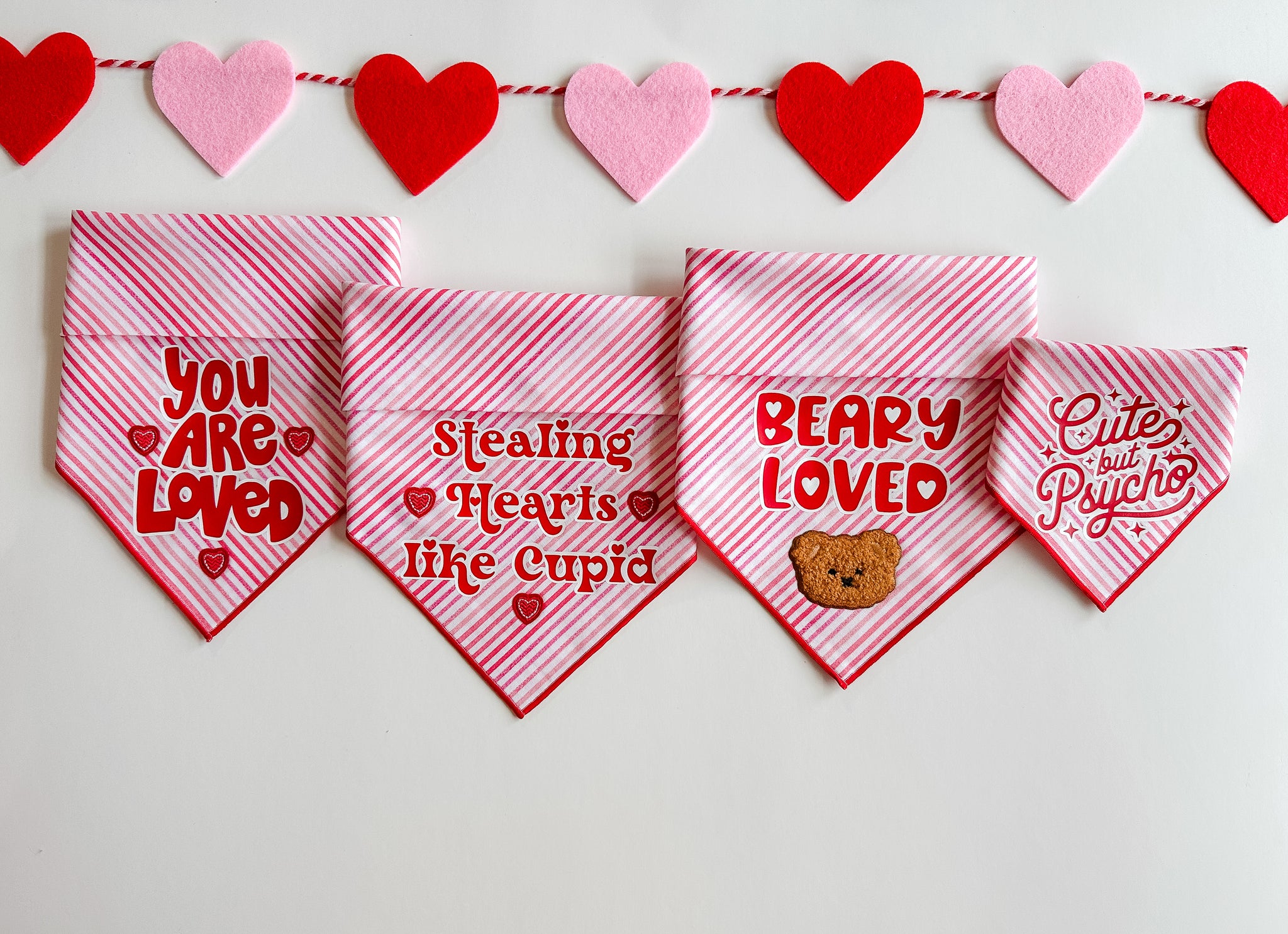 CAN PERSONALIZE - Can add your pet’s name to personalize this bandana. Heat transfer vinyl will be used in all personalization of bandanas. For this particular bandana, the letters will be red. Make sure to type exactly what you want printed on the bandana. Also choose a font from the picture or a saying if you'd like one of those. If no font is specified, one will be chosen for you.